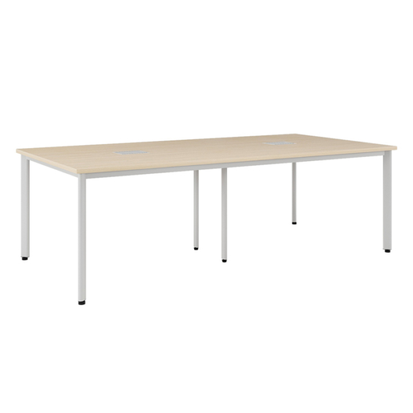 Bàn họp Nội Thất Hòa Phát: Bàn họp chân sắt Oval, mặt gỗ melamine và có 2 nắp hộp điện.