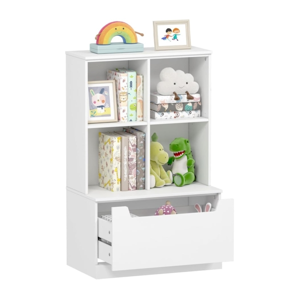 Mẫu kệ sách DKFKS35 được thiết kế với kiểu dáng hiện đại, thân thiện tạo nên không gian lưu trữ gọn gàng. Kệ có cấu trúc đa năng với phần trên là kệ mở hoàn toàn gồm 4 ngăn vuông vắn, thích hợp để trưng bày sách và các vật dụng trang trí nhỏ. Đặc biệt là 1 hộc kéo lớn nằm ở dưới, cung cấp một không gian lưu trữ kín đáo hoàn hảo. Các ngăn và hộc kéo được thiết kế vừa vặn, dễ sử dụng và có các chi tiết bo tròn để đảm bảo an toàn cho người dùng.