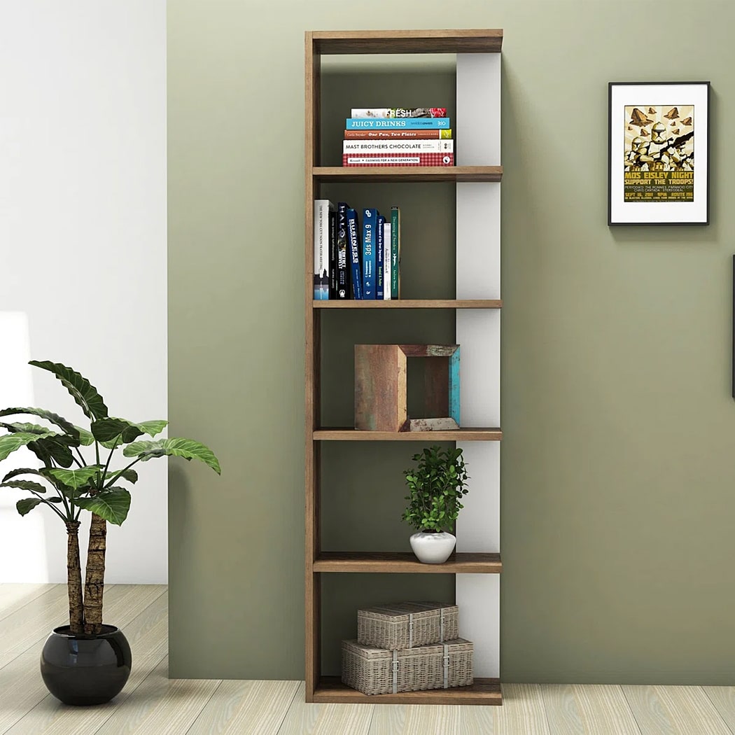 Mẫu kệ sách DKFKS37 có thiết kế hiện đại, cao và hẹp lý tưởng để tận dụng không gian dọc trong phòng hoặc góc làm việc. Kệ là dạng mở hoàn toàn, bao gồm 5 tầng lưu trữ rộng rãi, thích hợp để trưng bày sách, khung ảnh, đồ trang trí… Kiểu dáng kệ không chỉ đáp ứng nhu cầu cất giữ mà còn là điểm nhấn trang trí nội thất độc đáo.