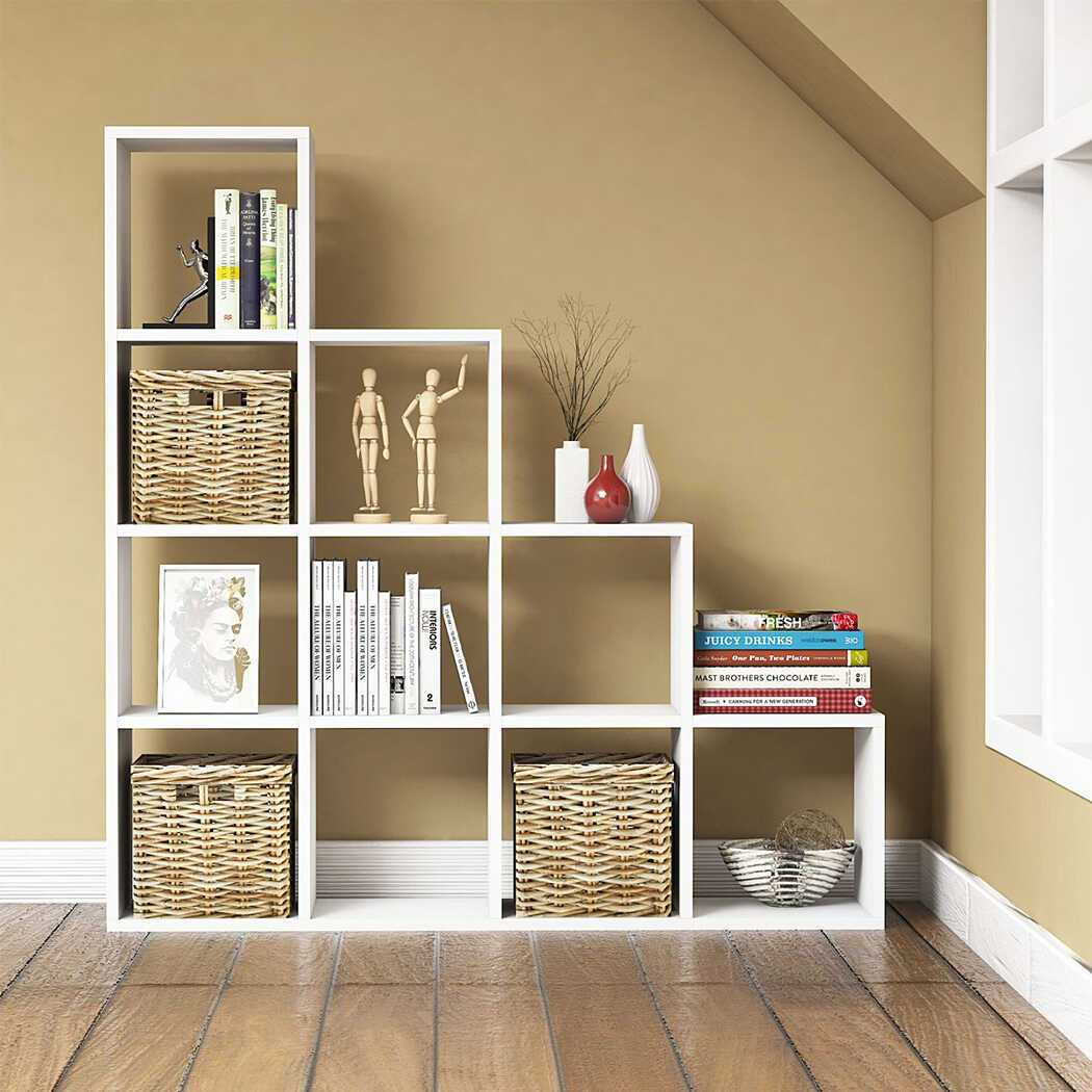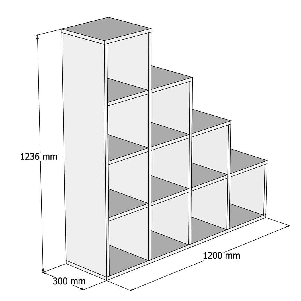 Mẫu kệ sách DKFKS39 nổi bật với kiểu dáng bậc thang sáng tạo, tạo nên một thiết kế hình học bắt mắt và hiện đại. Kệ bao gồm 10 ô vuông vắn với kích thước đồng đều, là hệ mở hoàn toàn cho phép người dùng tùy ý sắp xếp và trưng bày sách, đồ trang trí. Điểm đặc biệt là hình dạng xếp tầng đi lên của kệ, không chỉ mang lại tính thẩm mỹ cao mà còn rất phù hợp để sử dụng dưới cầu thang hoặc trong các căn phòng có trần dốc.