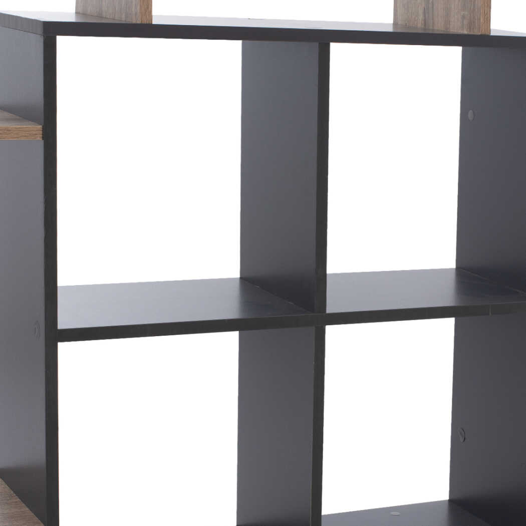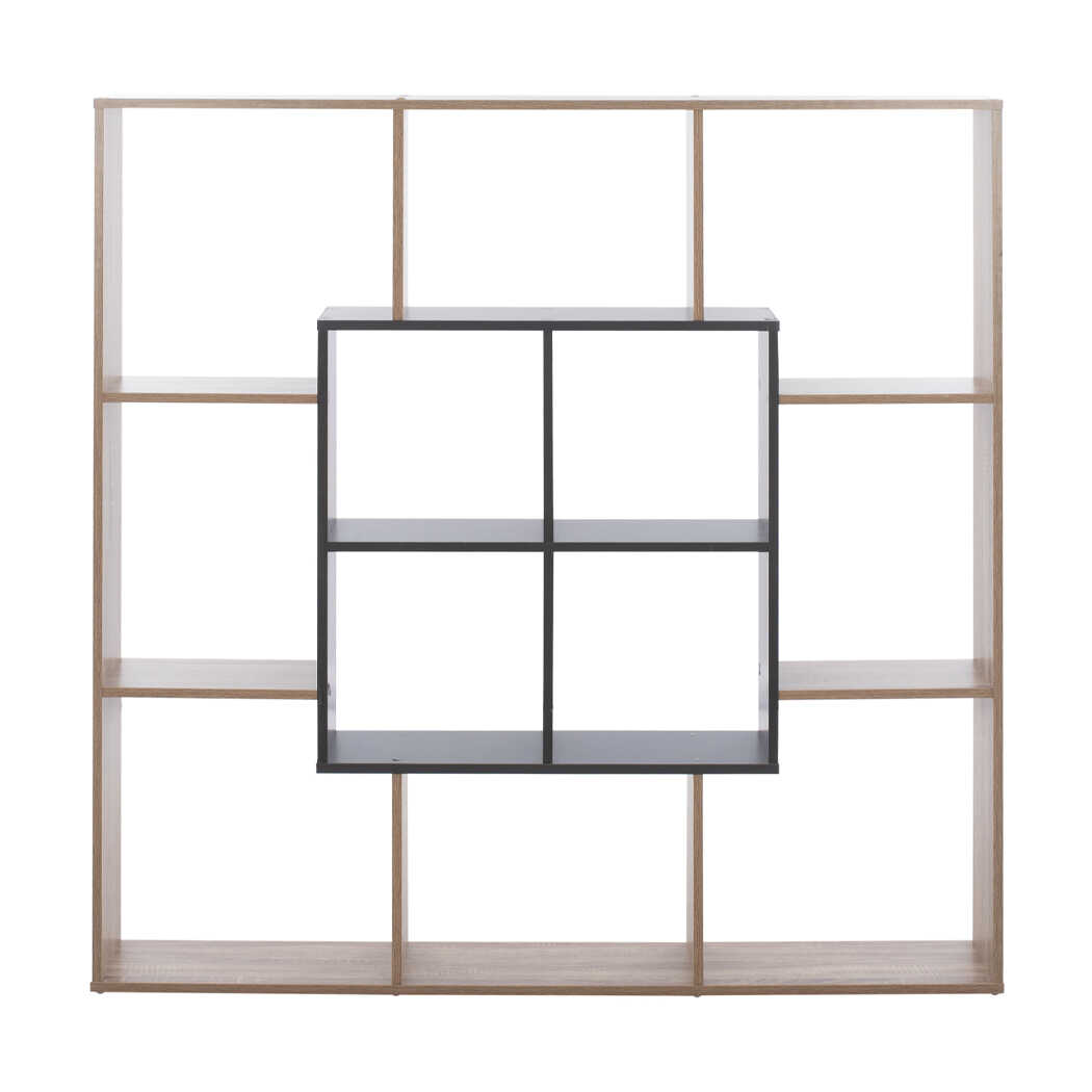 Mẫu kệ sách DKFKS40 nổi bật với thiết kế lồng ghép sáng tạo, tạo nên một bố cục nghệ thuật và hiện đại. Kệ có kích thước lớn, hình vuông và thường dùng làm kệ phân chia không gian hoặc áp tường, sử dụng sự kết hợp của 2 tông màu đối lập. Khung kệ bên ngoài có màu vân gỗ sáng tự nhiên, khối kệ vuông ở giữa lại có màu đen nổi bật, tạo điểm nhấn thị giác mạnh mẽ. Kệ là hệ mở hoàn toàn, gồm nhiều ô với các kích thước khác nhau, cấu trúc này không chỉ tăng gấp đôi không gian lưu trữ mà còn biến kệ thành tác phẩm điêu khắc trưng bày sách và đồ trang trí rất độc đáo và ấn tượng.