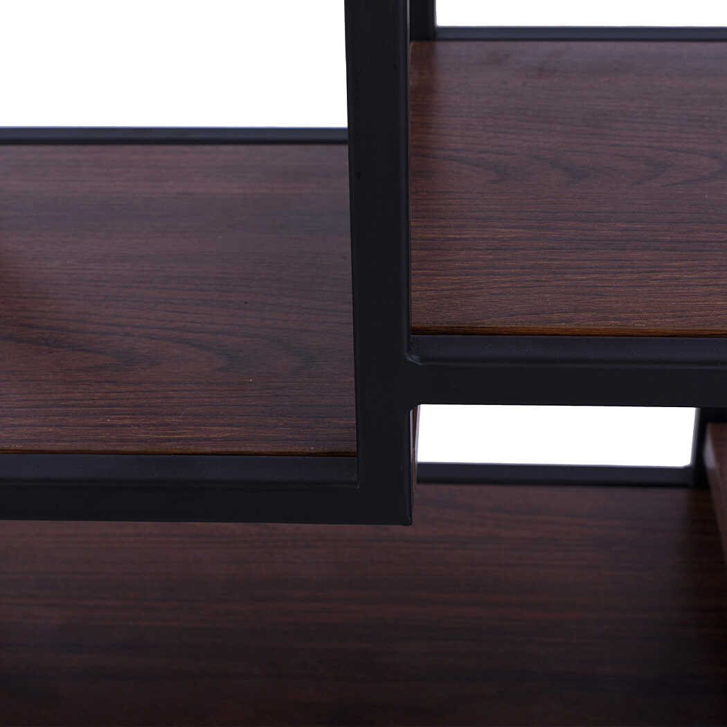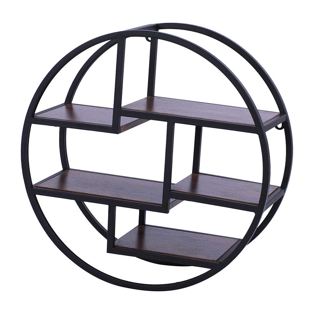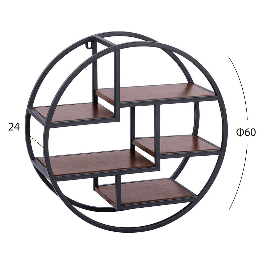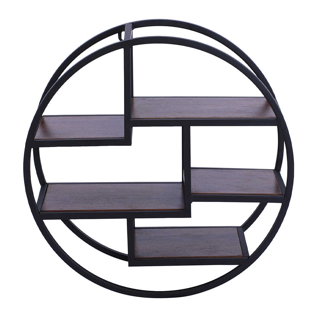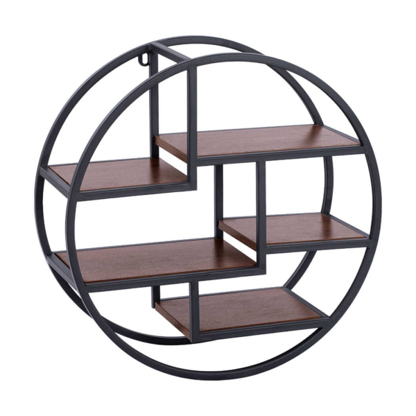 Mẫu kệ sách DKFKS42 có thiết kế rất độc đáo với kiểu dáng hình tròn, phá vỡ các khuôn mẫu kệ vuông vắn truyền thống. Kệ sử dụng sự kết hợp giữa khung thép sơn tĩnh điện và các tấm gỗ, mang đậm phong cách công nghiệp. Kệ dạng mở hoàn toàn, được thiết kế treo tường nhằm tiết kiệm không gian sàn. Điểm nhấn là cấu trúc bên trong được chia thành nhiều ngăn và tầng nhỏ, kiểu dáng bậc thang, tạo nên bố cục hình học thú vị và có thể trưng bày nhiều vật phẩm trang trí nhỏ.