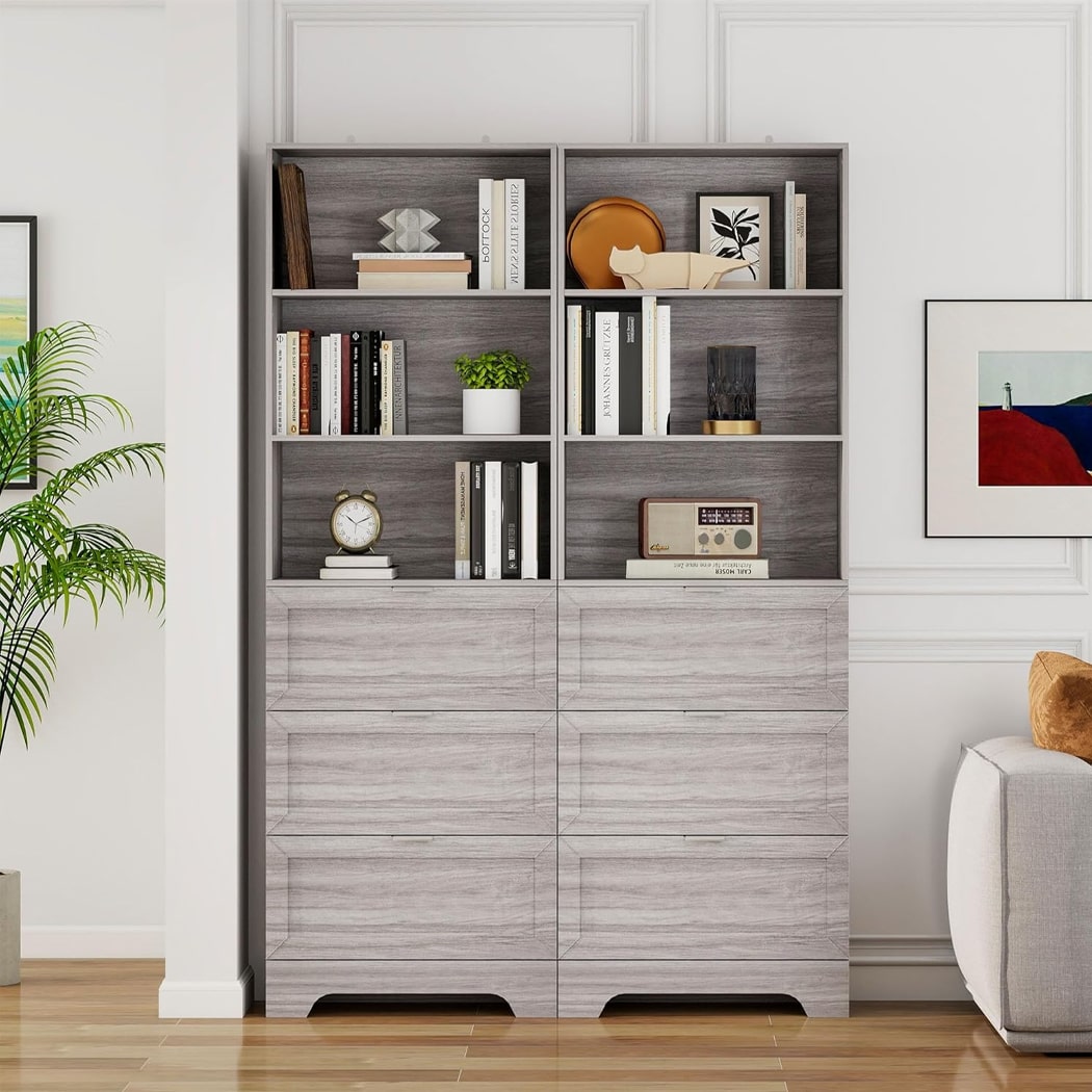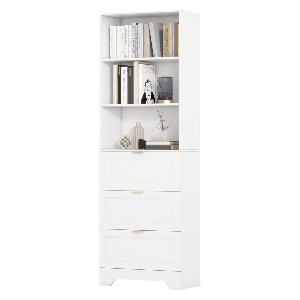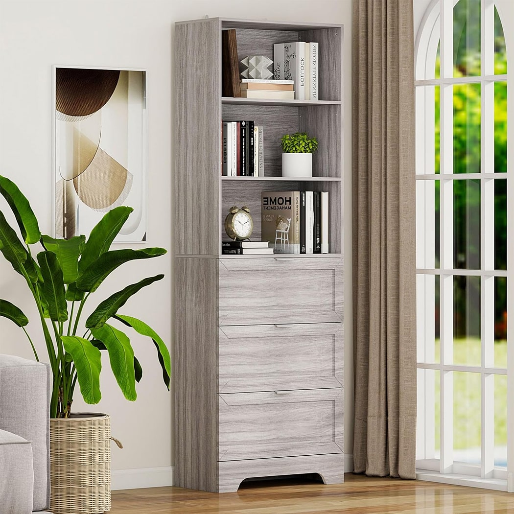 Kệ được chia thành 2 khu vực lưu trữ chính, tạo nên sự phân cấp thông minh gồm: phần trên 3 khoang kệ mở và chia bằng 2 tấm ván ngang, các khoang có chiều cao vừa phải, lý tưởng để đặt sách. Phần dưới gồm 3 hộc kéo lớn giúp dễ dàng cất giữ đồ đạc cá nhân, hoặc tài liệu quan trọng.