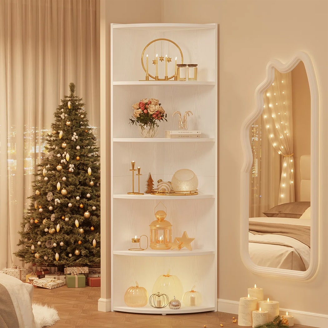 Mẫu kệ sách DKFKS50 có kiểu dáng đứng thẳng, cao và hẹp được thiết kế đặc biệt để đặt vào góc tường, giúp tận dụng triệt đẻ không gian góc chết. Kệ là hệ mở hoàn toàn, bao gồm 5 tầng lưu trữ. Điểm nhấn là các tấm kệ có hình dáng cong mềm, tạo cảm giác nhẹ nhàng, tránh sự cứng nhắc của các góc vuông. Thiết kế không chỉ cung cấp không gian lý tưởng để trưng bày sách và các vật dụng trang trí, mà còn là điểm nhấn trang trí nổi bật.