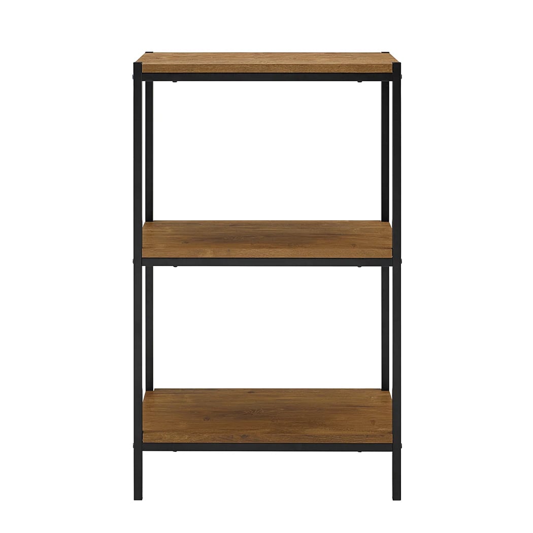 Mẫu kệ sách mini DKFKS56 có kiểu dáng thấp, hẹp và mang đậm phong cách công nghiệp, phù hợp làm kệ đầu giường, bàn phụ hoặc kệ đựng đồ nhỏ. Kệ được cấu tạo từ khung kim loại màu đen chắc chắn kết hợp với 3 tầng kệ gỗ ấm áp. Kệ dạng hệ mở hoàn toàn, cung cấp không gian lưu trữ và trưng bày tiện lợi. Với thiết kế tối giản, kệ vừa có chức năng lưu trữ vừa là một món đồ trang trí hiện đại, dễ dàng di chuyển và sắp xếp.