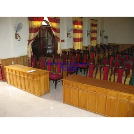Bàn hội trường HT006 được làm từ gỗ tự nhiên Accacia và gỗ công nghiệp có cốt gỗ MFC hoặc cốt gỗ MDFcùng với công nghệ dây chuyền sản xuất hiện đại từ Đức và Đài Loan.