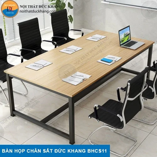Mẫu bàn họp DKBHCS11 có kiểu dáng đơn giản, tiện lợi nên được thị trường ưa chuộng. Bàn được làm từ gỗ công nghiệp phủ Melamine cao cấp, kết hợp chân sắt sơn tĩnh điện bền chắc. Mẫu bàn có kích thước 2mx1m2 nên phù hợp với không gian phòng họp vừa phải, đủ chỗ cho 6 – 8 người.