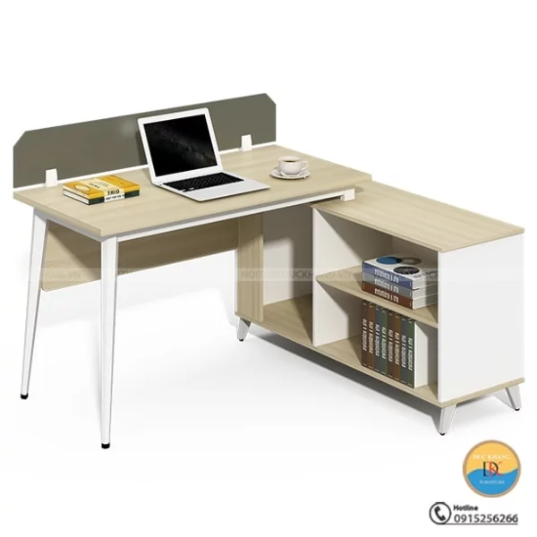 Bàn chân sắt DKIR03 có thiết kế hiện đại với 1 vế chân sắt côn và 1 bên là tủ phụ kiêm chân bàn chịu lực. Nhờ đó người dùng có xoay trái hoặc xoay phải đều có thể làm việc được. Ngoài ra, mẫu bàn này có thể sử dụng để tạo thành các cụm bàn làm việc nhóm 2, 4, 6, 8… chỗ ngồi.