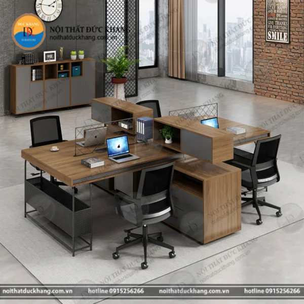 Cụm bàn làm việc nhóm 4 chỗ ngồi kèm tủ phụ tài liệu Đức Khang DKMD94